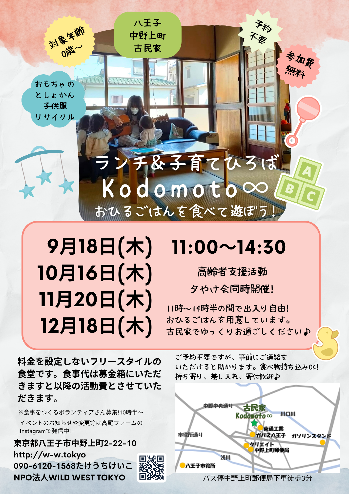 中野上町にある古民家を活用して、子育てひろば&親子食堂、高齢者支援活動などを実施している他、レンタルスペースとして貸し出しもしています。