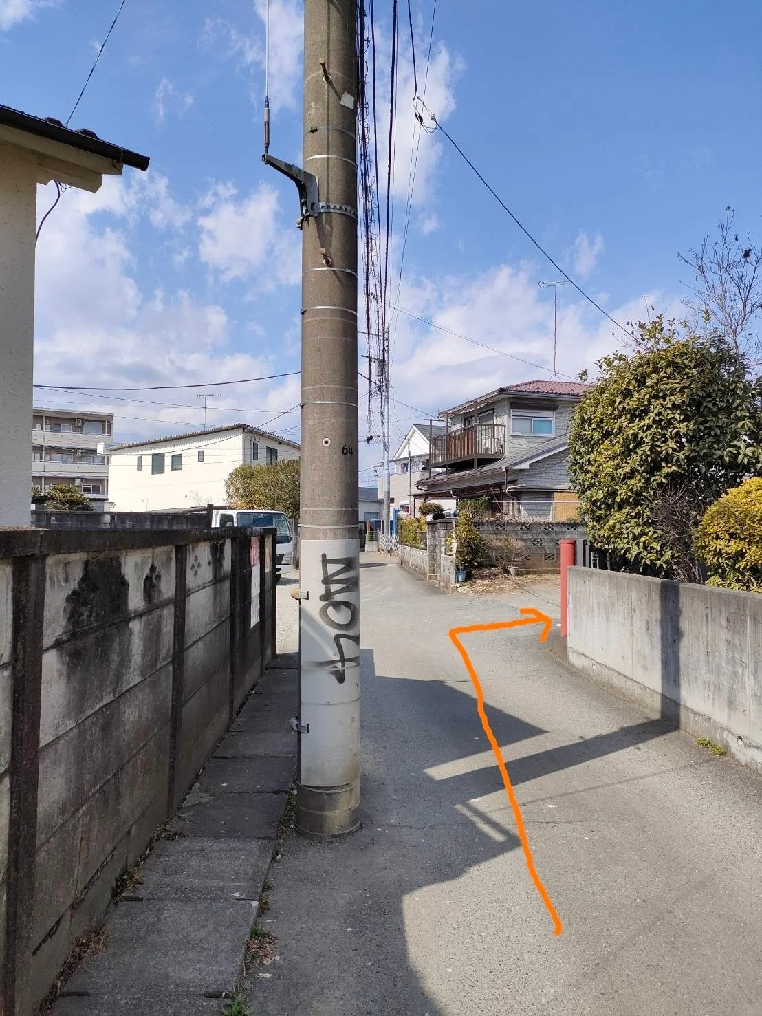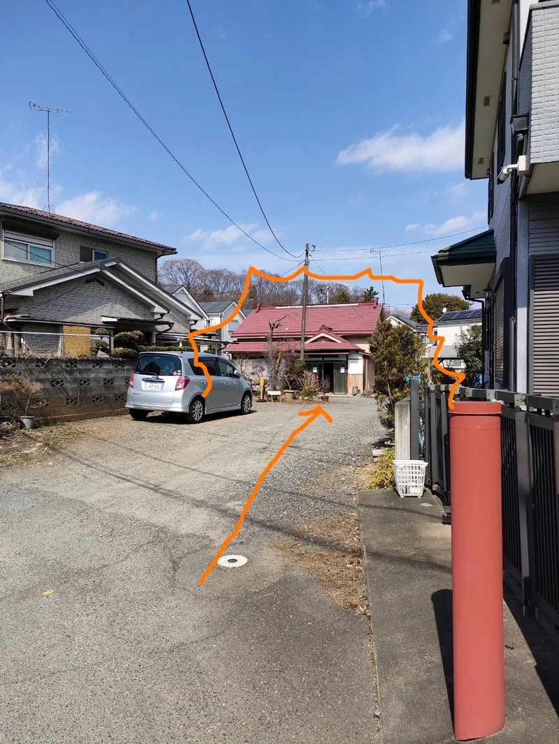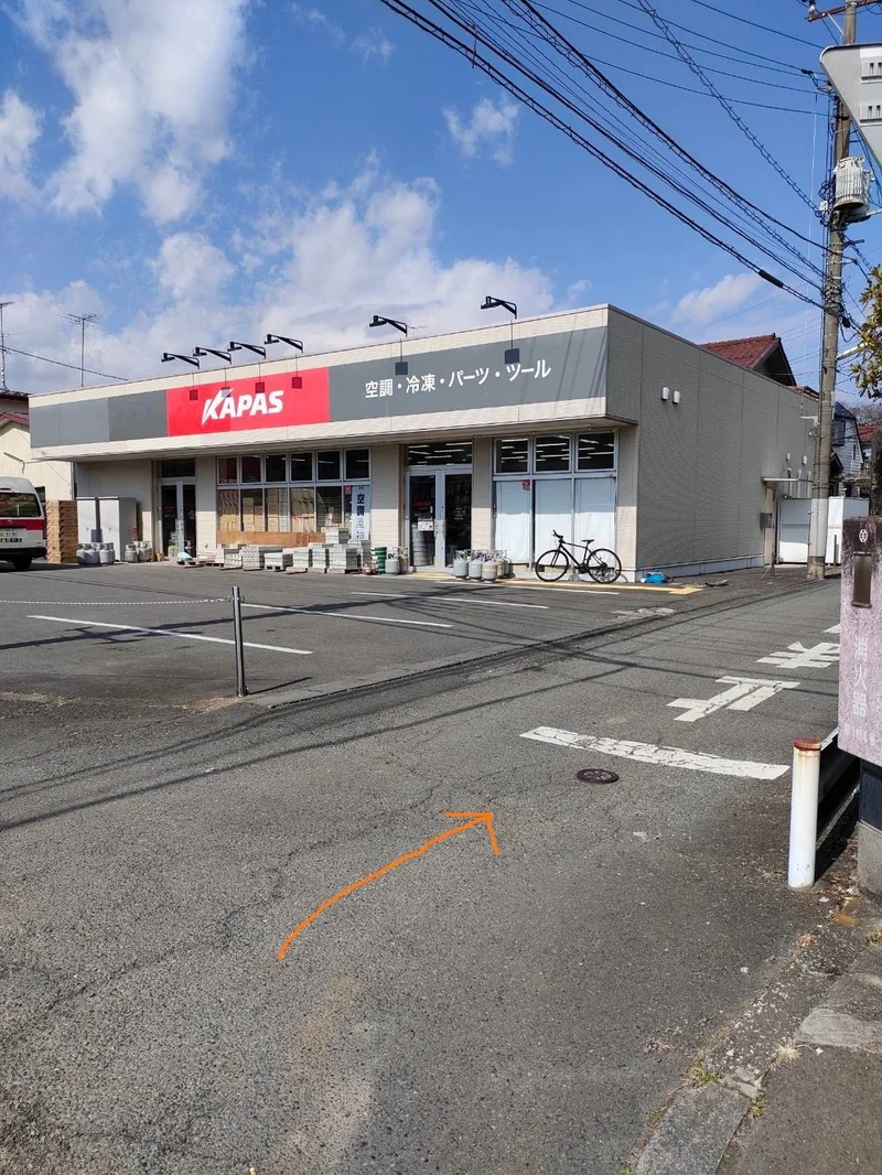 カパスさんの赤い看板を目印に横の細い道に入ります。